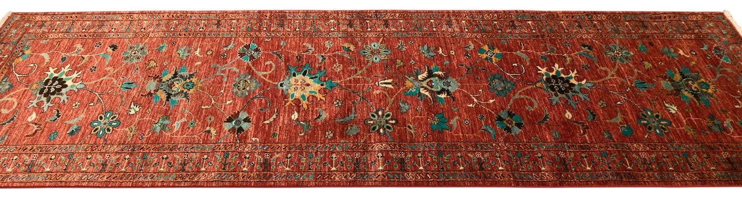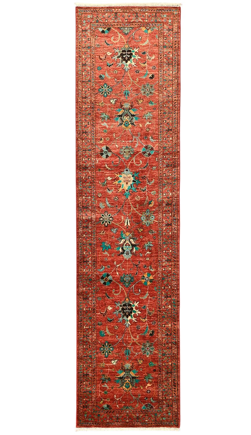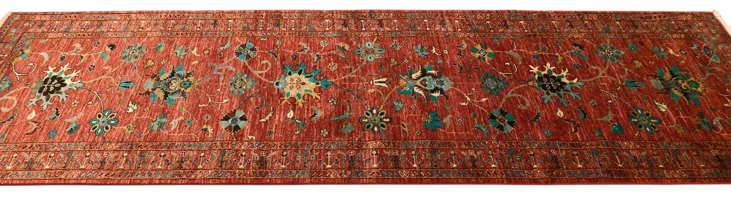 Эта ковровая дорожка Ziegler соткана вручную по старинной технологии из шерстяной нити веретенной крутки с применением натуральных красителей. Основу составляет насыщенный терракотовый цвет, украшенный изысканными растительными узорами в бирюзовой, бежевой и изумрудной гамме. Тончайшая работа мастеров делает дорожку гармоничным сочетанием традиции и элегантности, подчеркивающим индивидуальность интерьера.